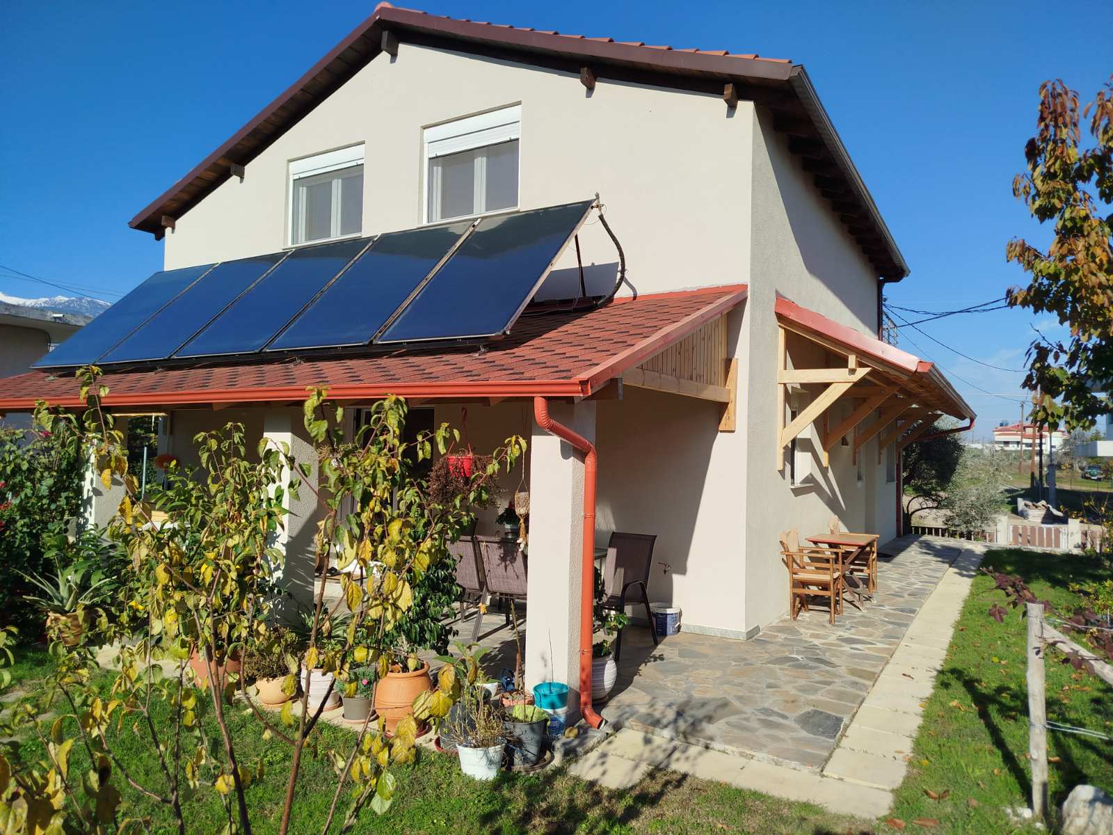 U okviru placa nalazi se natkriveno parking mesto, dok je dodatno obezbeđen i obilan parking prostor na ulici ispred kuće, što omogućava maksimalnu praktičnost za vlasnike i goste. Balkoni kuće nude bogat i nesmetan pogled na Egejsko more i planinu Olimp, stvarajući izuzetno atraktivan ambijent tokom cele godine.